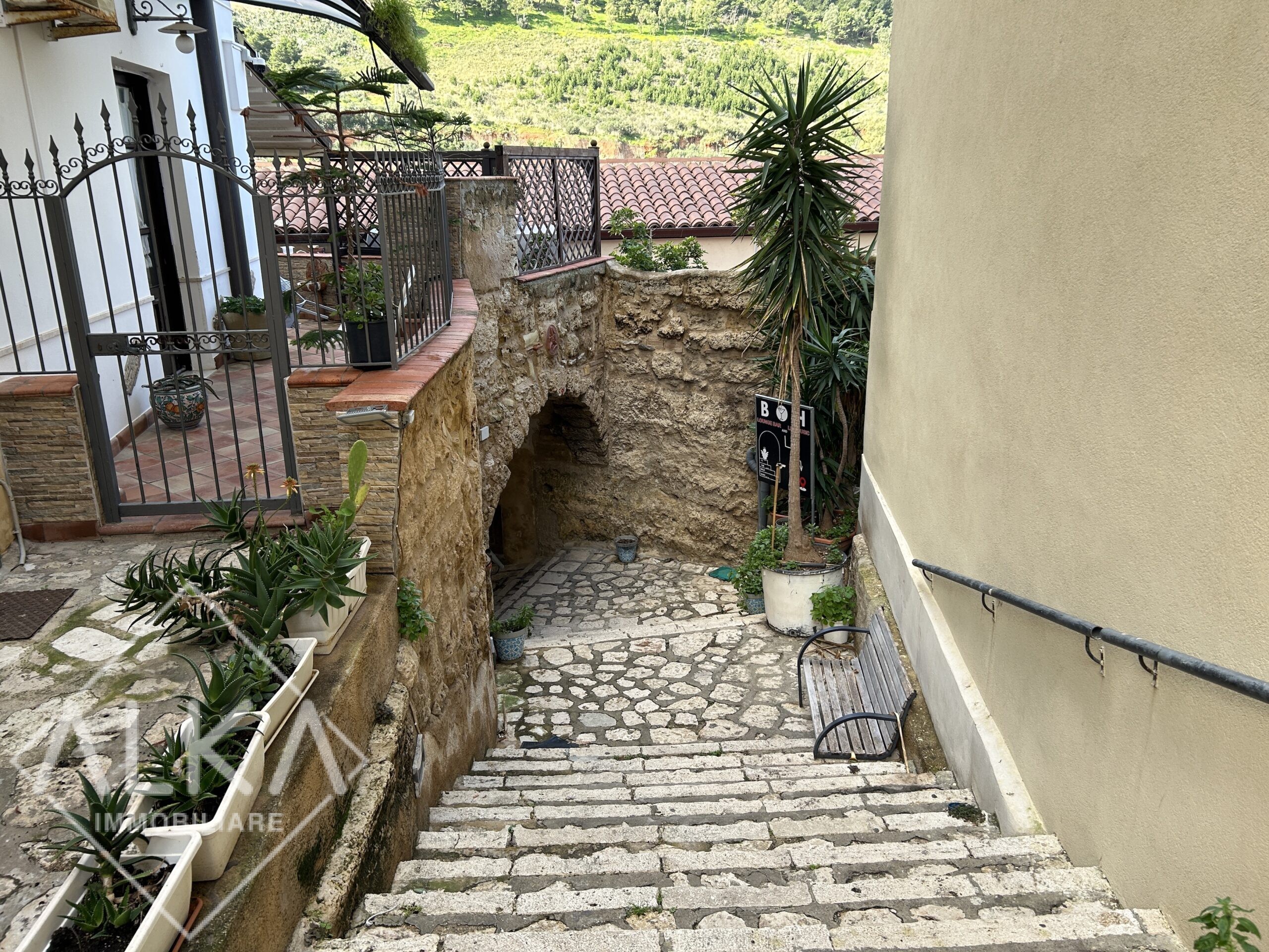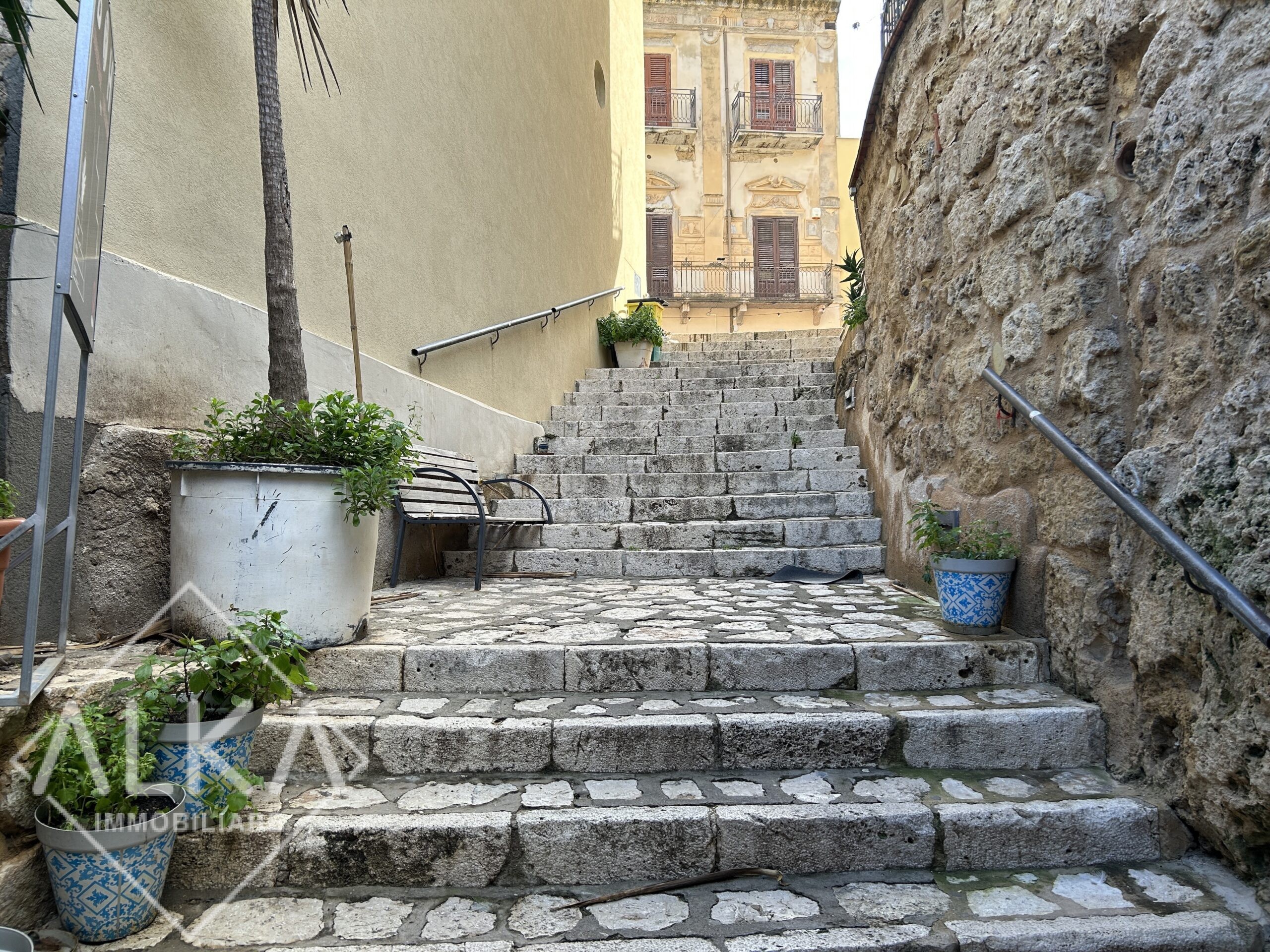 L’accesso al terzo ed ultimo piano è possibile anche da una antica e suggestiva scalinata che collega Corso Giuseppe Garibaldi direttamente al porto turistico, elemento di grande fascino e valore storico, ideale per un ingresso indipendente o scenografico.